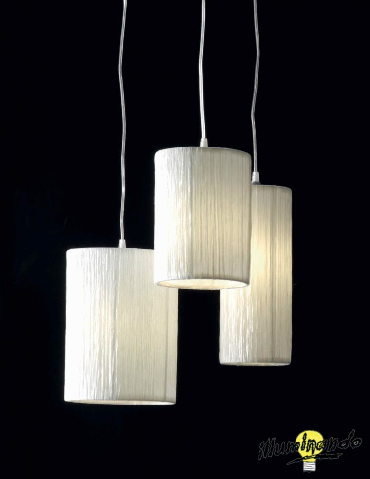 SP QUI QUO QUA 3 3 x E27 max 53W escluse E.L. 1 Paralume in tessuto crespato nei colori bianco e arancio Cavo di 180 cm SP QUI QUO QUA 6 6 x E27 max 53W escluse Paralume in tessuto crespato nei colori bianco e arancio Cavo di 180 cm E.L. 1